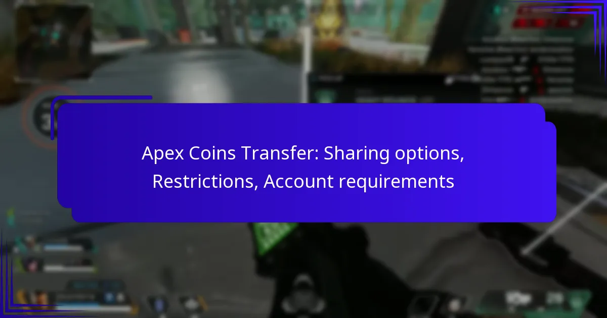 Apex Coins can be shared among players through methods such as peer-to-peer transfers, gifting, and in-game sharing. However, players must be aware of various restrictions and account requirements, including transfer caps, cooldown periods, and eligibility… Apex Coins Transfer: Sharing options, Restrictions, Account requirements